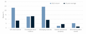 Stock markets rarely deliver returns close to their long‑term averages in any single year. In 2025, returns were in line with ten-year averages in some cases, and meaningfully above and below in others.